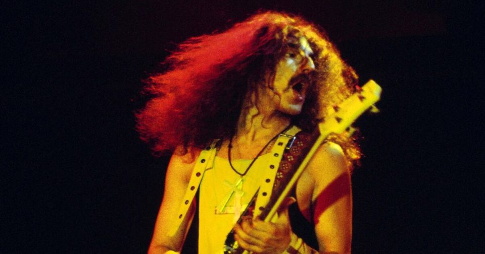 Geezer’s home décor mined similar imagery. He was back from a tour in agony with a kidney stone when his shocked parents found his flat walls painted black and covered in upside down crosses, along with a picture of the devil.