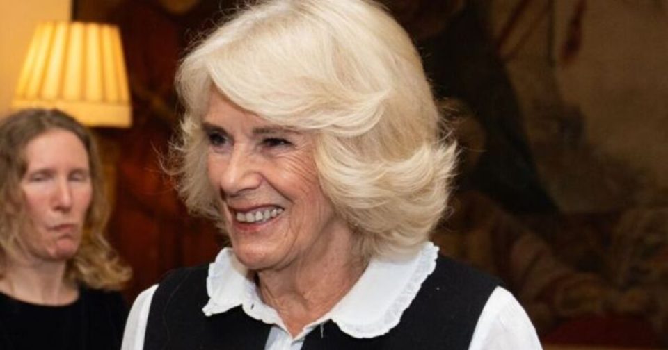 Queen Camilla put on a huge smile after arriving at the Garden Room at Clarence House this afternoon for the Book Prize reception.