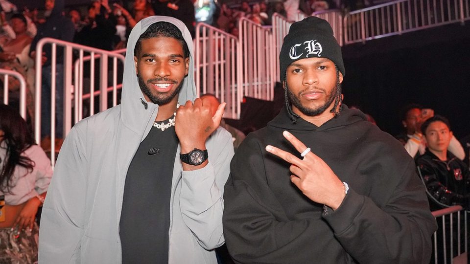 Shedeur Sanders, left, and Shilo Sanders at the AT&T Playoff Playlist Live! concert at State Farm Arena on Jan. 18, in Atlanta. (Julia Beverly/Getty Images)